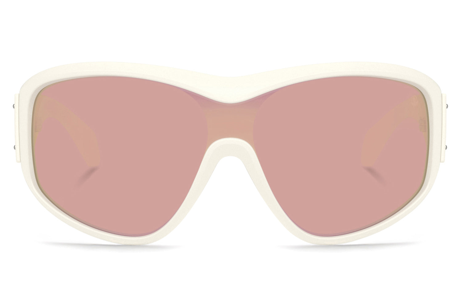 The Moncler - Thyra (ME8016U) showcases a commanding mask shape that nods to the slopes with athletic energy flowing through every line. Born from Moncler's alpine heritage, this bold wraparound design seamlessly combines high-performance bio-nylon with dynamic bio-rubber for the perfect fusion of comfort, grip, and sport-luxe style. Mountain-inspired monogram temple tips evoke the peaks that define the brand's origins. Classic colorways pay homage to Moncler's rich legacy and meticulous craftsmanship. These designer sunglasses blend performance DNA with contemporary aesthetics and all-day wearability. Perfect for active explorers seeking distinctive eyewear that transitions effortlessly from mountain terrain to urban environments with bold, exploration-ready functionality. Includes Moncler pouch, cleaning cloth, and 1-year manufacturer warranty.