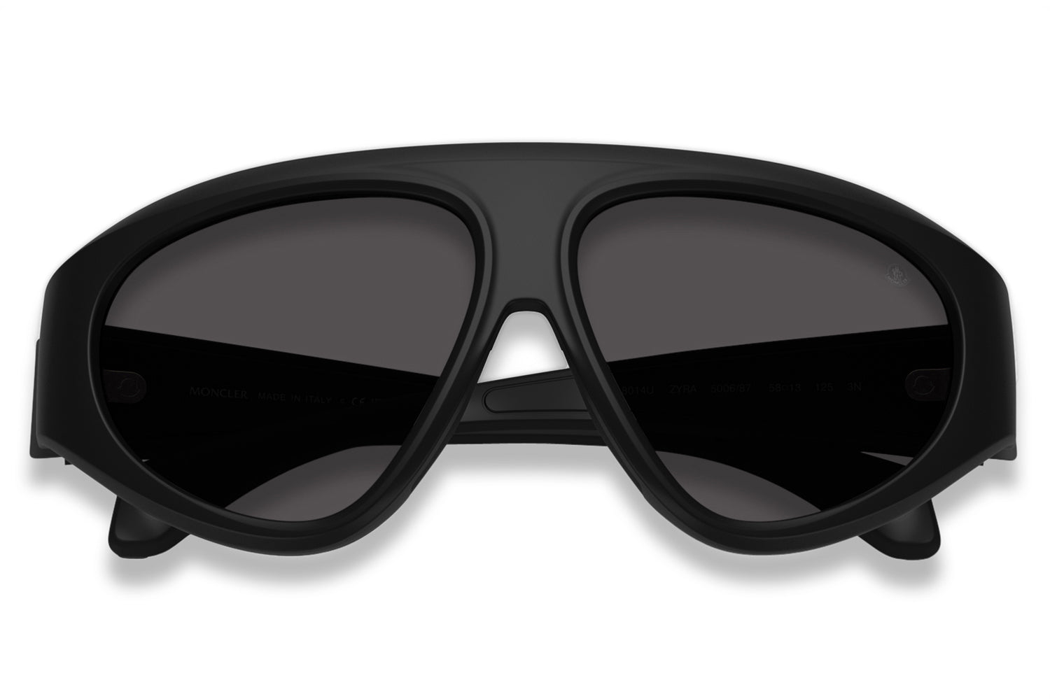 The Moncler - Zyra (ME8014U) takes flight from mountain summits to city streets with a bold teardrop pilot silhouette featuring bi-injected frames that unite grip and performance. Born from Moncler's alpine heritage, bold volumes echo the iconic contours of the brand's legendary down jackets with elevated sportswear aesthetics. A rubberized bell logo accents temples, complemented by sleek rivet detailing and sophisticated matte finishes. Available in five colorways including Moncler's signature off-white for versatile styling. These designer sunglasses blend meticulous Italian craftsmanship with athletic functionality and all-day comfort. Perfect for those seeking statement-making eyewear that transitions effortlessly with contemporary style and exploration-ready innovation. Includes Moncler pouch, cleaning cloth, and 1-year manufacturer warranty.