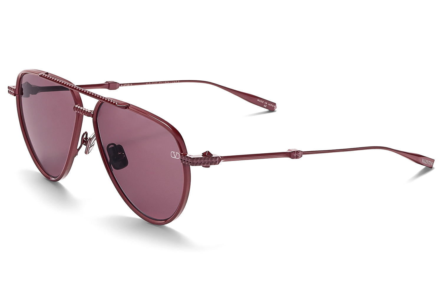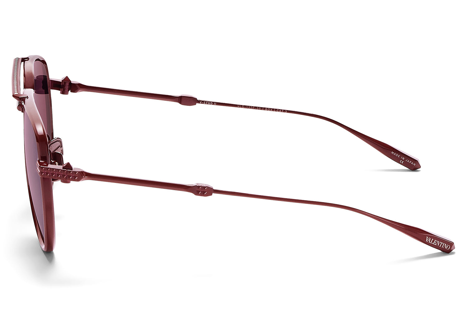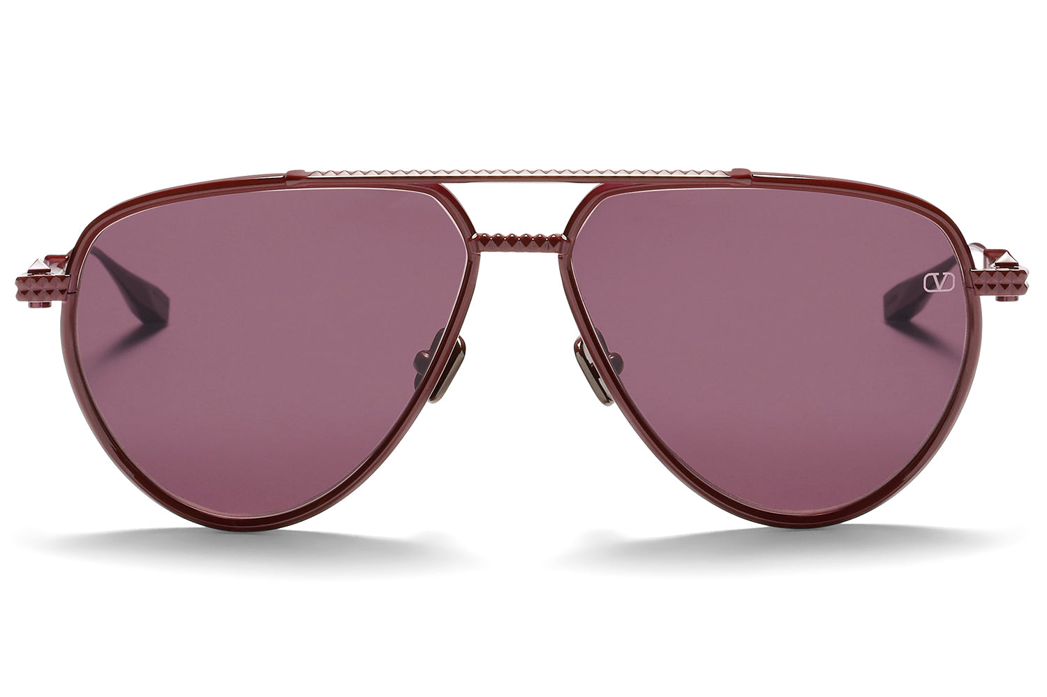 A perennial named for one of the most venerated and iconic design symbols in Roman architecture and the Valentino accessory universe, V-STUD II is an oversized aviator that perfectly reflects the Valentino less-is-more design philosophy. Rocking a subtle yet sophisticated twist on the classic aviator shape, V-STUD II is crafted of the finest Japanese titanium and embellished with signature 3D Valentino studs on the bridge, end-pieces, temples and temple tips. Subtle yet subversive, V-STUD II proudly lives at the intersection where punk and bourgeois styles collide. Made in Japan for unparallel craftsmanship and quality, the classic yet modern V-STUD II is available with high contrast AR sun lenses in V-Light Gold/Dark Green solid (compatible with optional Valentino Eyewear chain featuring VLogo buckle and Valentino studs), Black Rhodium/Dark Grey to Light Grey gradient, Bordeaux/Bordeaux solid, and as an optical frame in Matte Black Rhodium, Brown Copper, and Brushed White Gold. Handmade in Japan. Includes Valentino box, hard case, soft case, cleaning cloth, and 1-year manufacturer warranty.