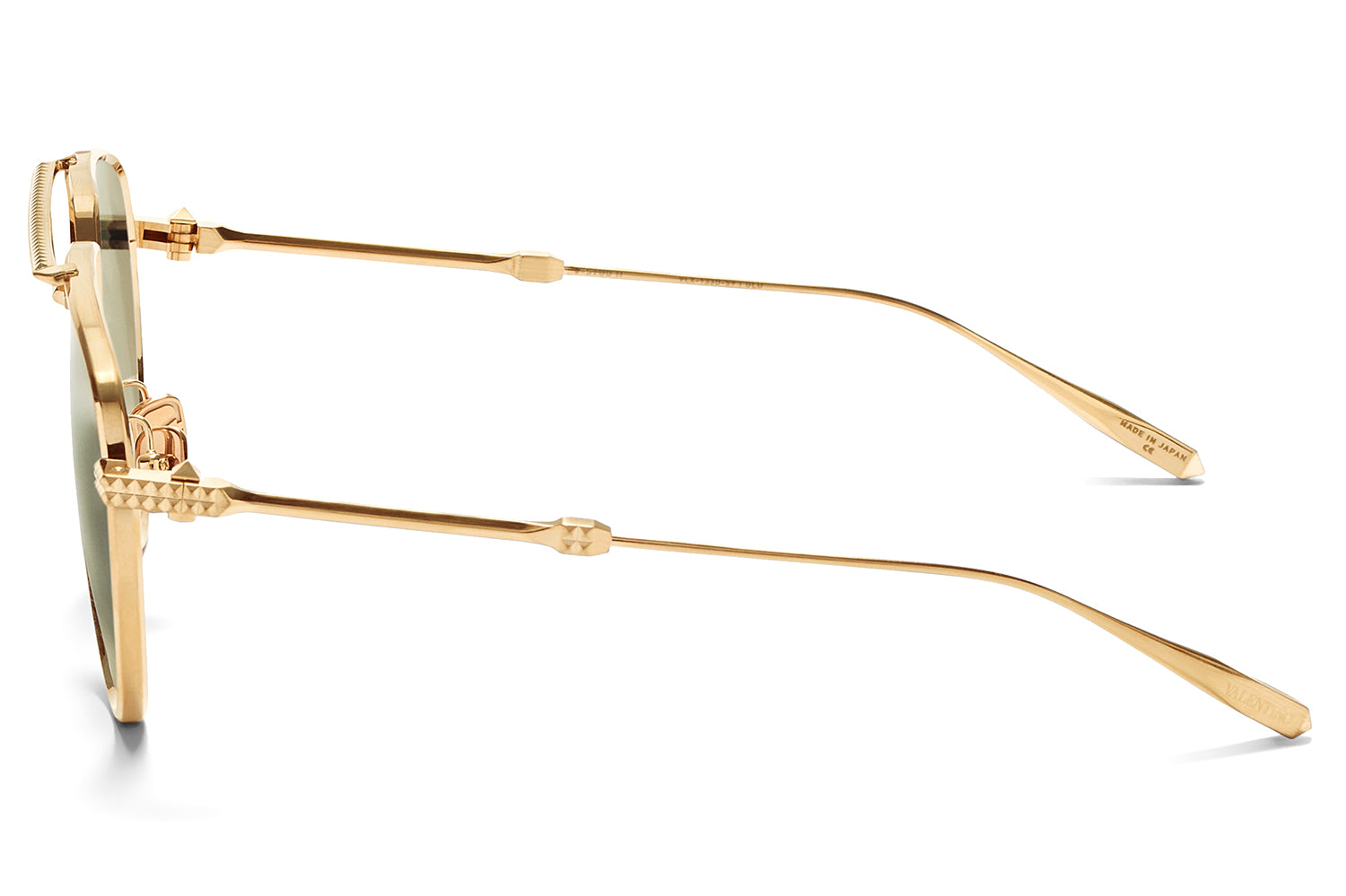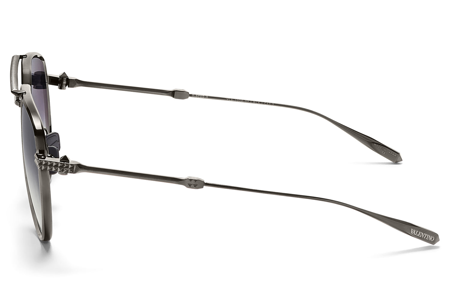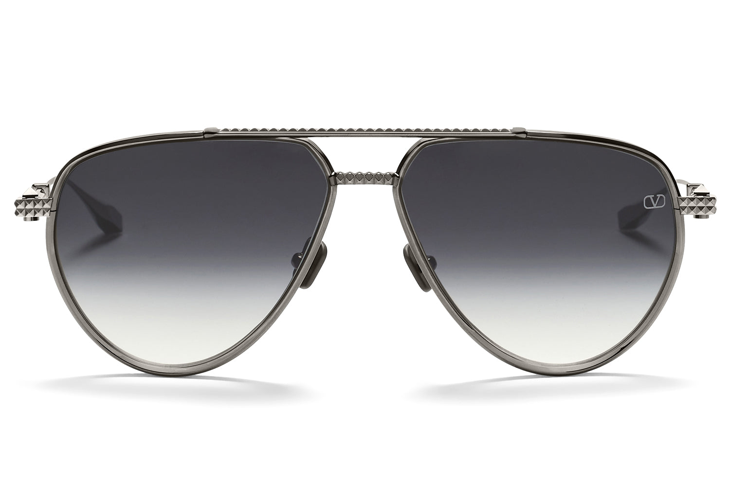 A perennial named for one of the most venerated and iconic design symbols in Roman architecture and the Valentino accessory universe, V-STUD II is an oversized aviator that perfectly reflects the Valentino less-is-more design philosophy. Rocking a subtle yet sophisticated twist on the classic aviator shape, V-STUD II is crafted of the finest Japanese titanium and embellished with signature 3D Valentino studs on the bridge, end-pieces, temples and temple tips. Subtle yet subversive, V-STUD II proudly lives at the intersection where punk and bourgeois styles collide. Made in Japan for unparallel craftsmanship and quality, the classic yet modern V-STUD II is available with high contrast AR sun lenses in V-Light Gold/Dark Green solid (compatible with optional Valentino Eyewear chain featuring VLogo buckle and Valentino studs), Black Rhodium/Dark Grey to Light Grey gradient, Bordeaux/Bordeaux solid, and as an optical frame in Matte Black Rhodium, Brown Copper, and Brushed White Gold. Handmade in Japan. Includes Valentino box, hard case, soft case, cleaning cloth, and 1-year manufacturer warranty.